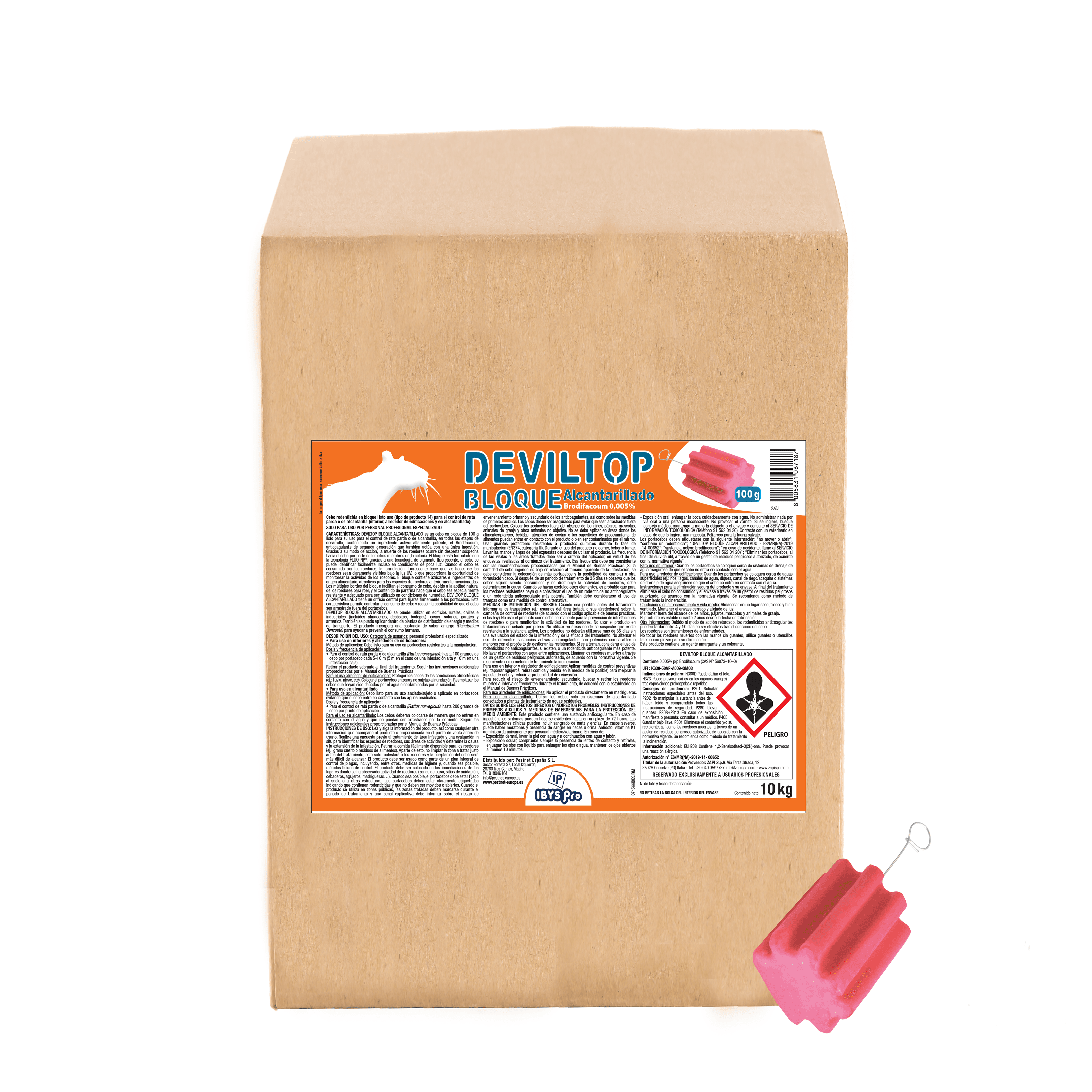 CEBO RODENTICIDAEN BLOQUE ALCANTARILLADO A BASE DE BRODIFACOUM