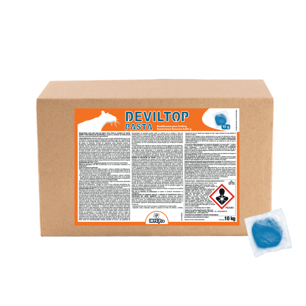 Rodenticida en cebo fresco, listo para su uso, en bolsitas de 15 g, con una formulación Ćŗnica āPASTA PLUSā para maximizar su palatabilidad frente a ratas y ratones. Contiene Brodifacoum, principio activo anticoagulante de segunda generación.
