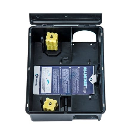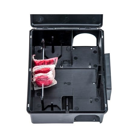 Estación portacebos en polipropileno de alta calidad que tiene una apertura lateral y un mecanismo de un solo cierre para permiter un servicio más rápido y más cómodo. Su versatilidad permite la colocación de diferentes cebos raticidas (bloque, pasta, y trigo). Se puede anclar al suelo o la pared. Incluye accesorio de fijación.